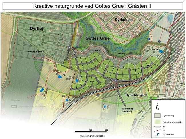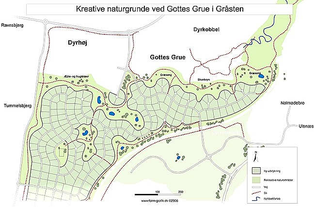 Vejføringen ville virke kraftigt hastighedsnedsættende og grundenes udformning lægge op til kreative haveanlæg.